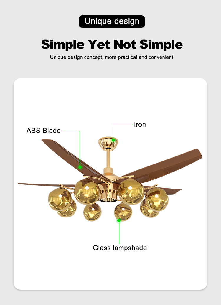 Manufacturer Electric Gold 52 Inch ABS Blade Remote Control DC Luxury Modern Bldc Led Ceiling Fan With Light