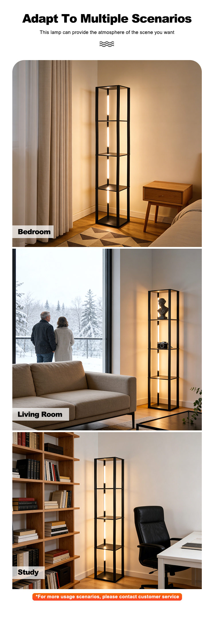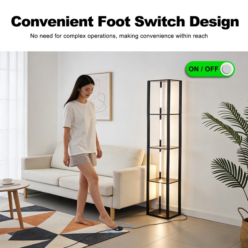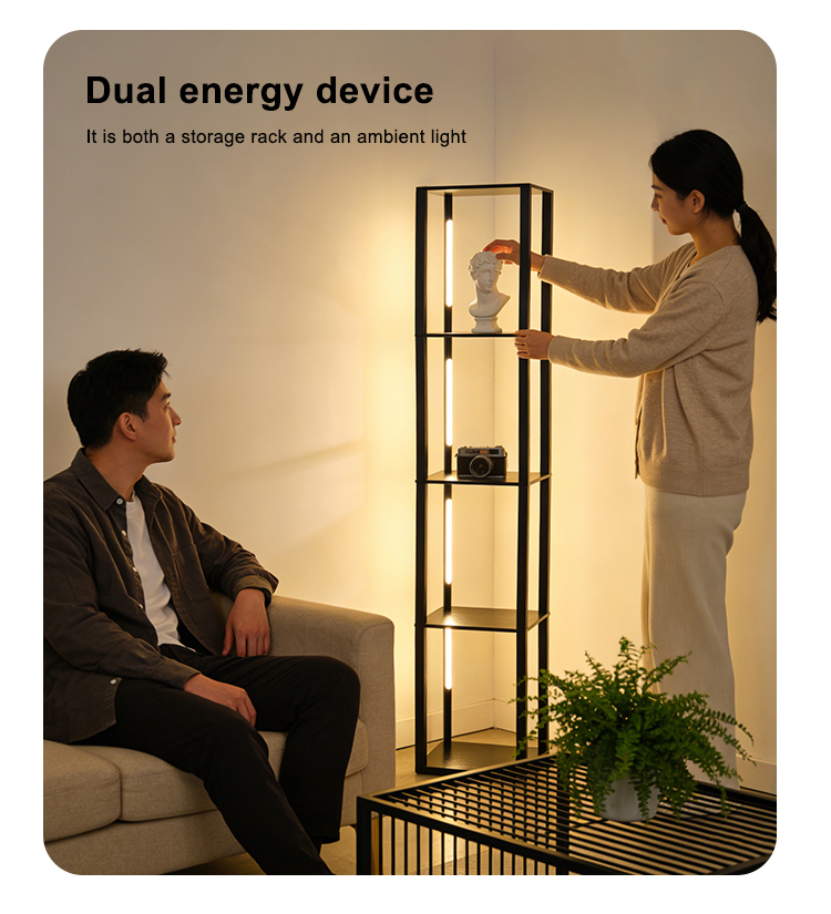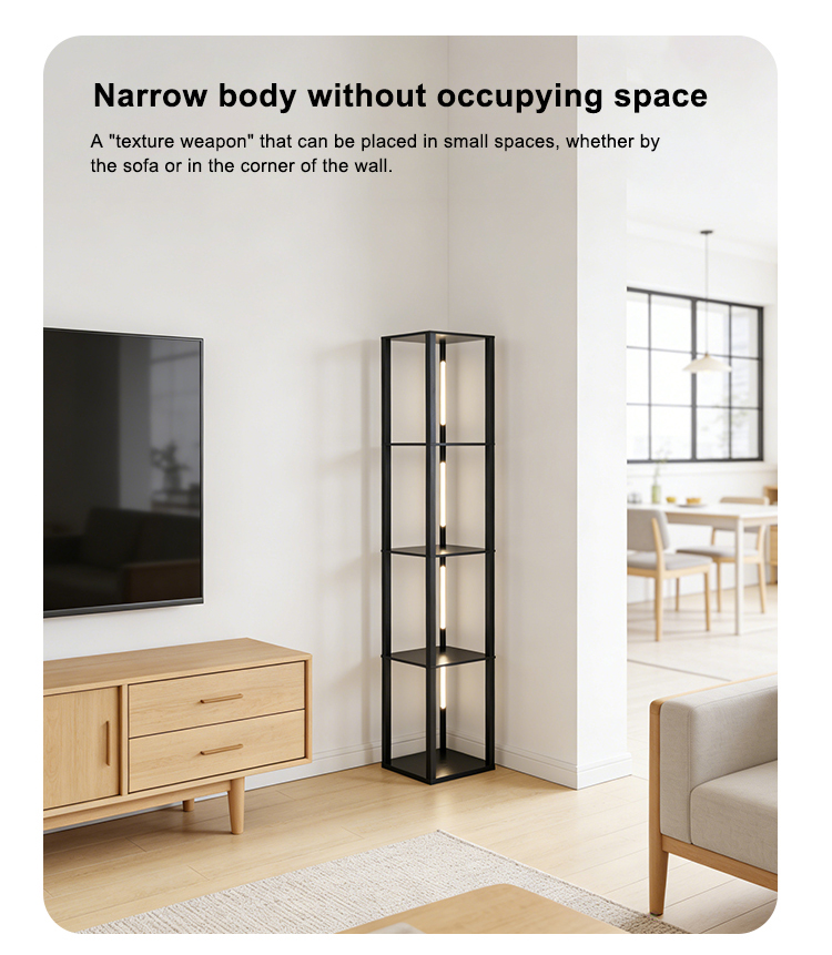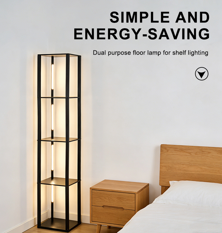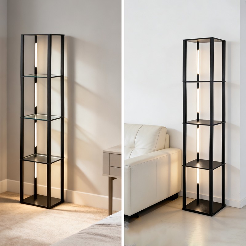 Corner column Floor Lamp with Shelves