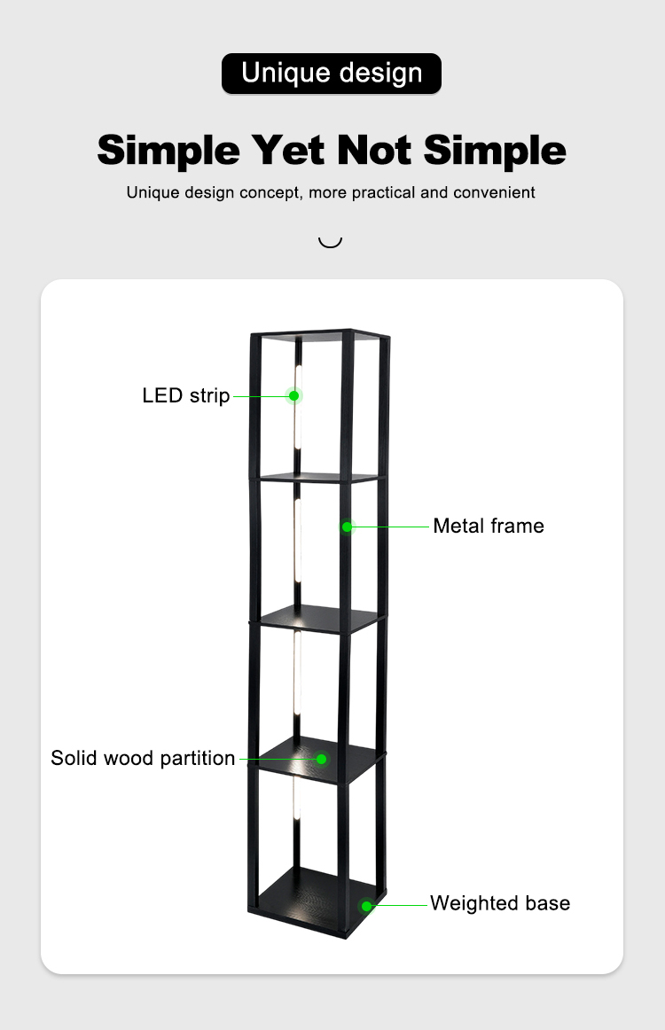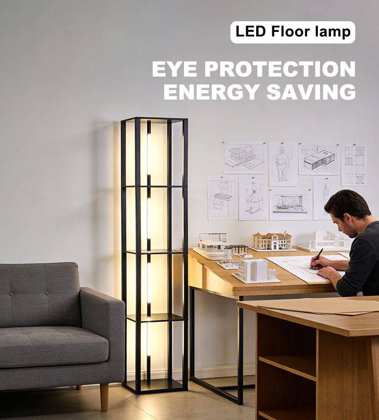 Factory Wooden Nordic Luxury LED Modern Living Room Corner Column Floor Lamp with Shelves
